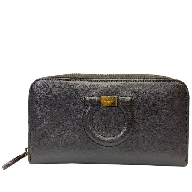 > Salvatore Ferragamo フェラガモ ガンチーニ 財布 長財布 ラウンドファスナー ロングウォレット ロゴ レザー ブラウン