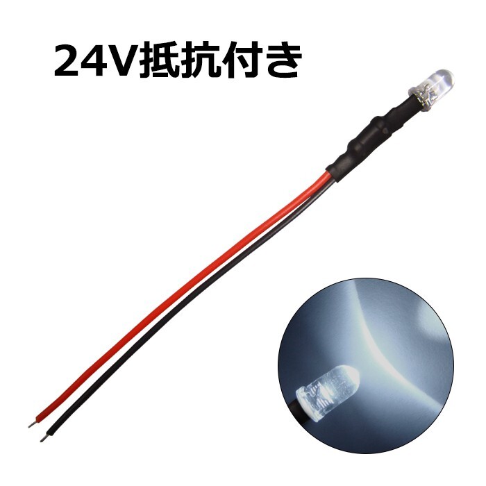 - LED 発光ダイオード 5mm 砲弾型 白色 24V車用 抵抗付き 10個