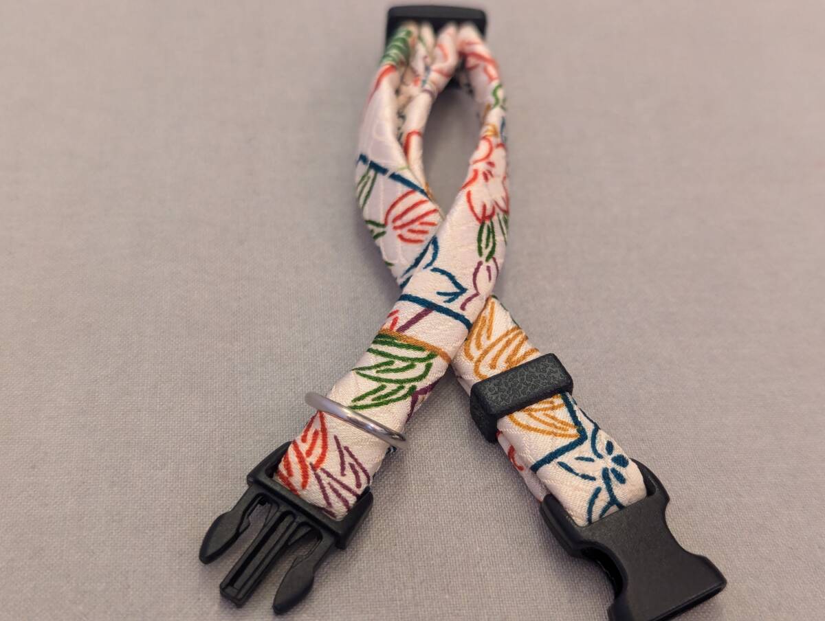 - ★手作り京都作家物 猫 首輪 和柄★正絹生成地彩糸目花模様★ハンドメイド (セーフティタイプ) 即決700円