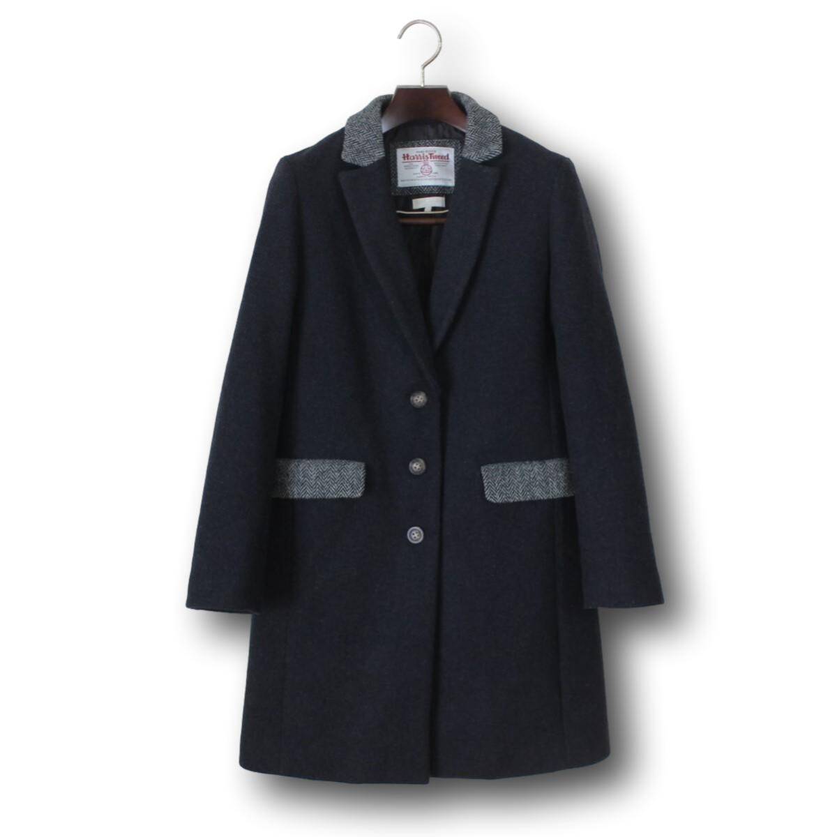 > 01【新品同様】アースミュージック & エコロジー × ハリスツイード チェスターコート S ★未使用に近い★ レディース グレー tqe