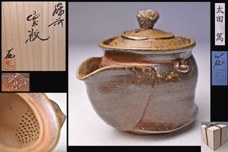 > 太田篤 ★ 備前宝瓶 ★ 共箱共布栞 ★ 上作 ★ 土焼形の三拍子 ★ 煎茶道具 急須 茶注 ★ 新品未使用