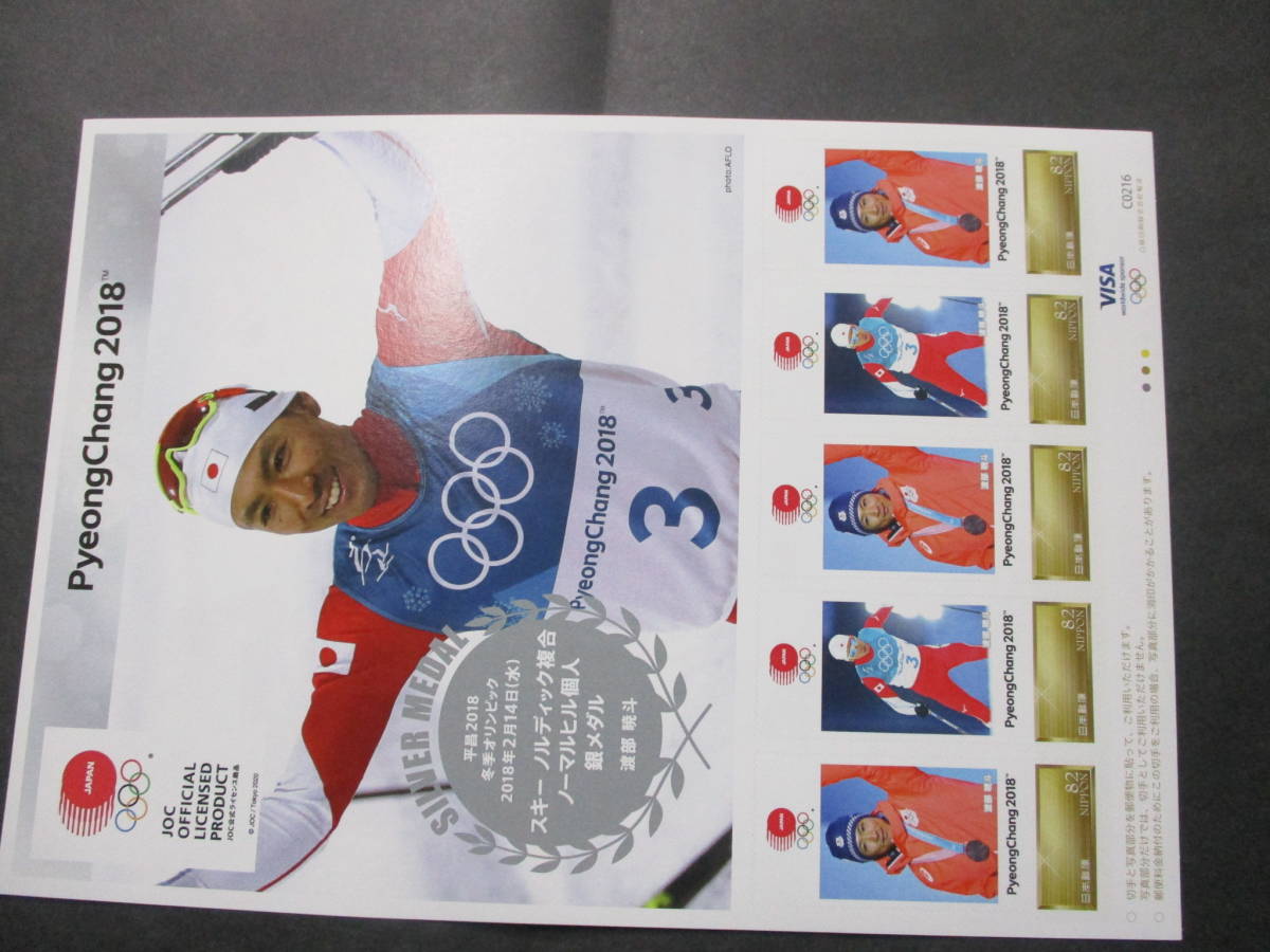 - ★フレーム切手(シール切手) 平昌五輪メダリスト(渡部暁斗)(82円切手5枚)未使用 1シート★NO2★