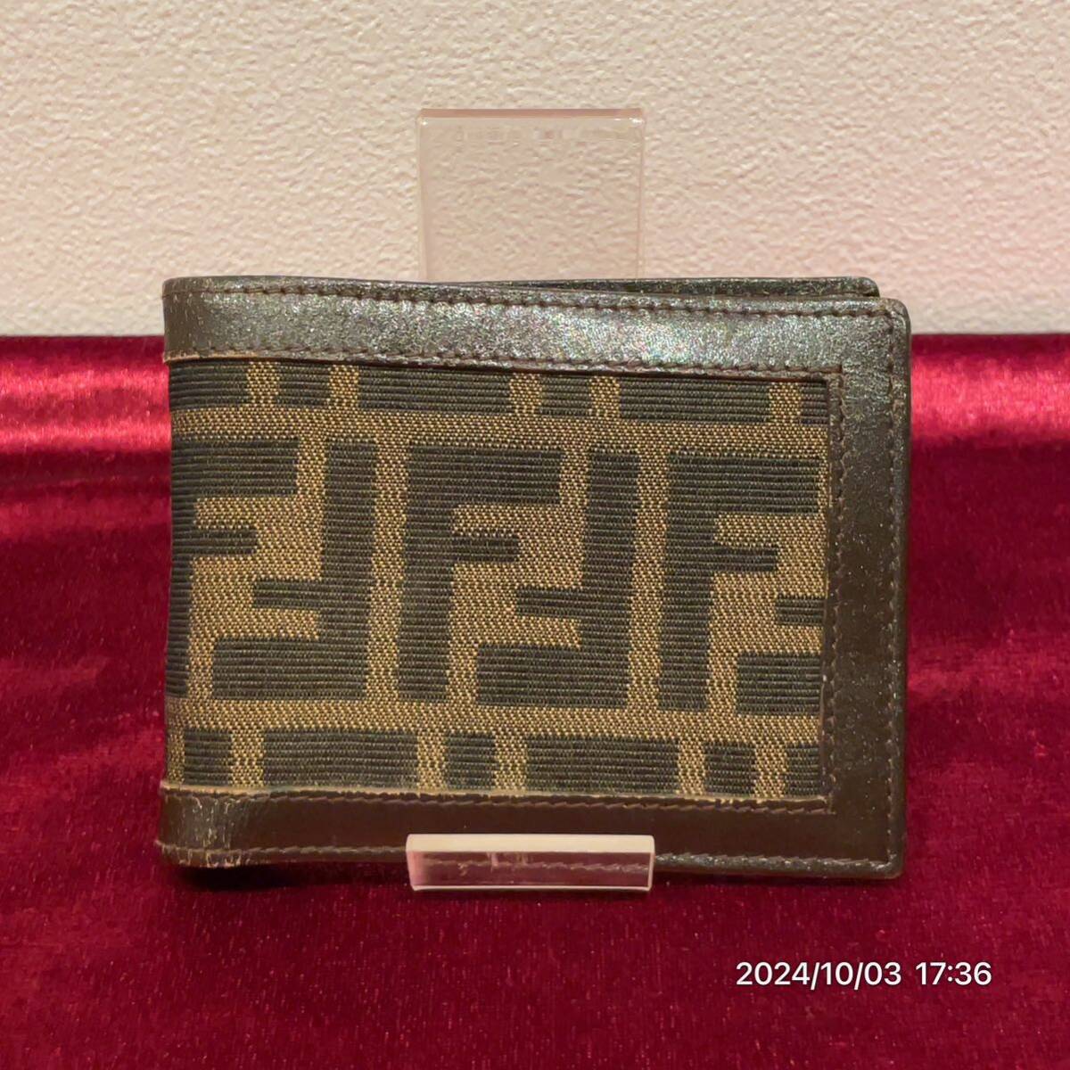 - FENDI フェンディ ズッカ柄 キャンバス レザー 革 二つ折り ウォレット 財布