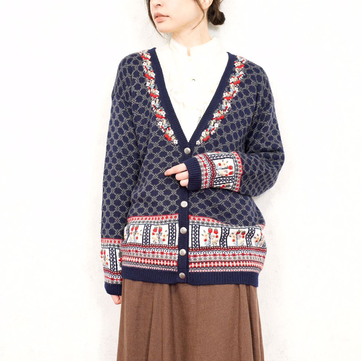 - USA VINTAGE Katies COIN BUTTON EMBROIDERY DESIGN KNIT CARDIGAN/アメリカ古着コインボタン刺繍デザインニットカーディガン