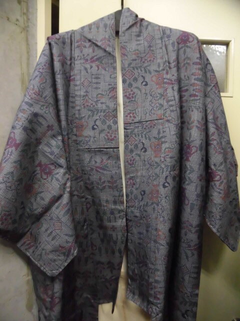 - ★大島紬/幾何学文様/未使用長期保管品★身丈 約155cm★