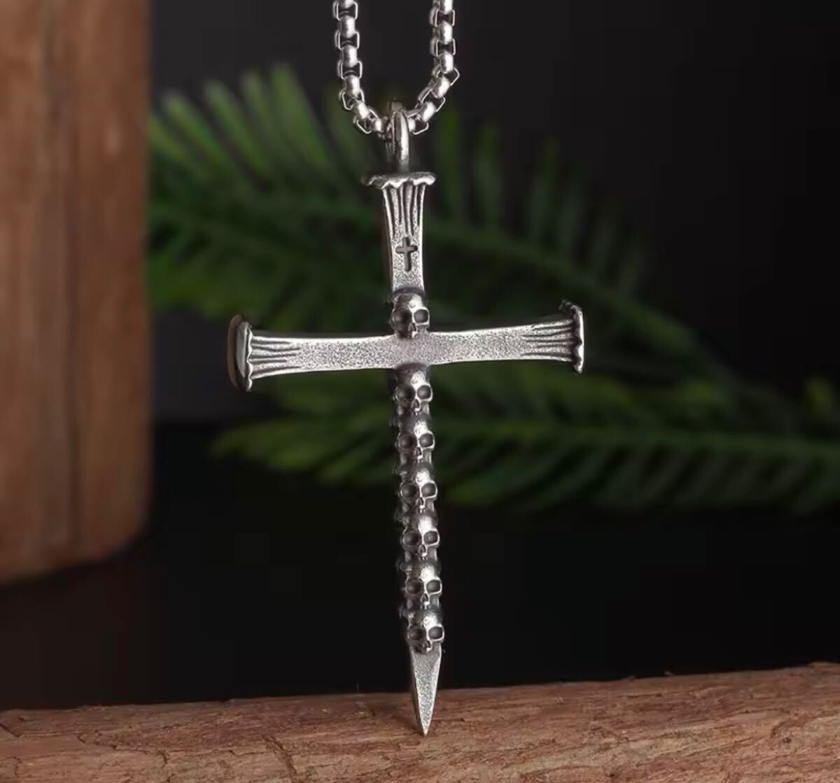 - 十字架 クロス スカルネックレス アクセサリー ネックレス ペンダント 髑髏 骸骨 スカル ドクロ ジュエリー クール パンク ロック 2890