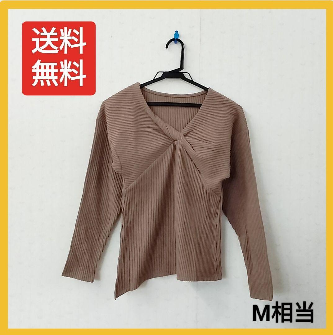 - 【送料無料】薄手 レディース カットソー ツイストニット アシンメトリーニット リブニット スリット ベージュ モカカラー M相当