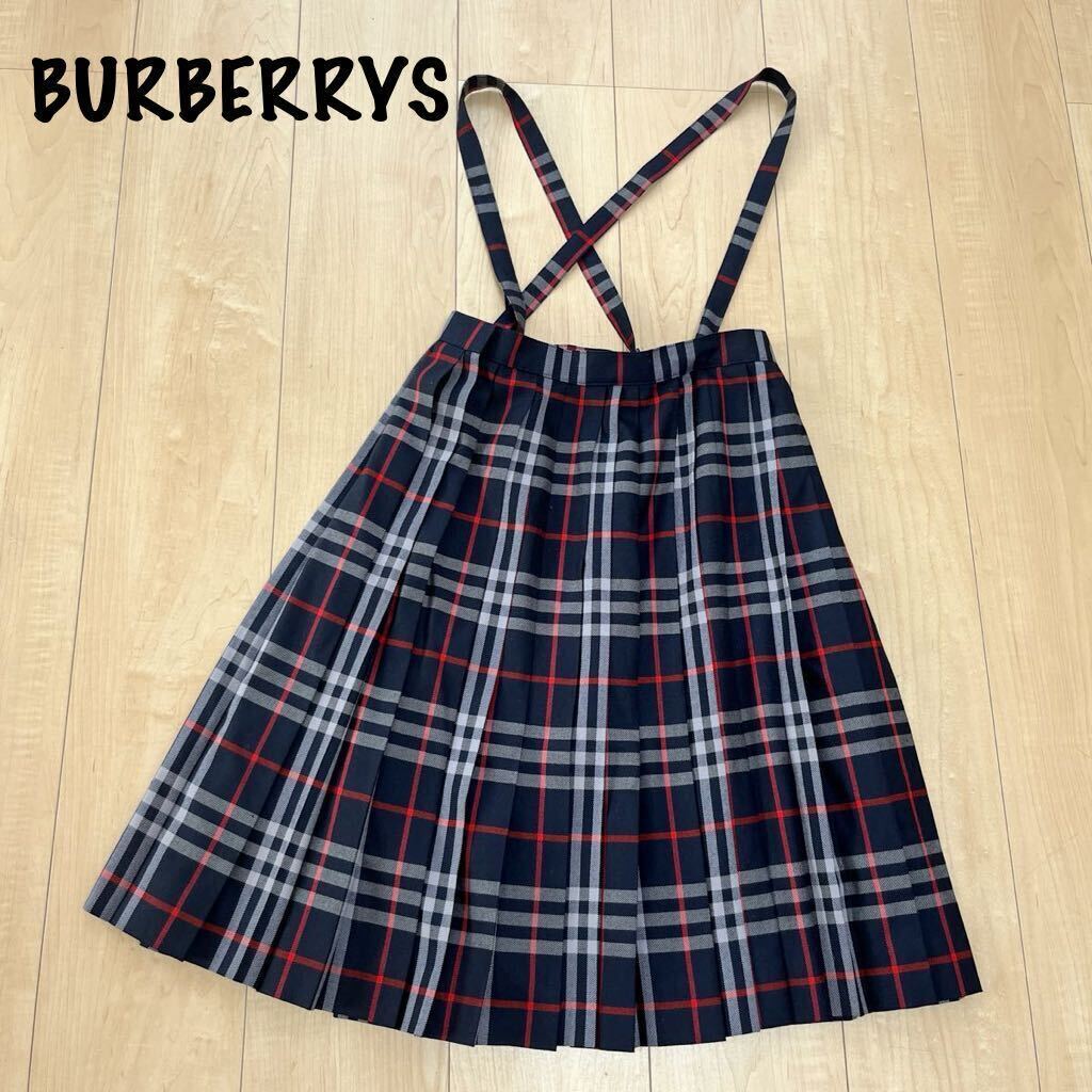 - 美品 BURBERRYS バーバリーズ チェック プリーツスカート 肩紐 150A スカート 吊りスカート ネイビー ウール 卒業式 セレモニー