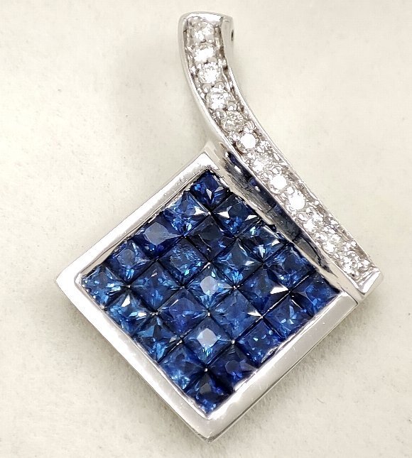 - Y9189★K18WG 天然サファイア 1.00ct 天然ダイヤモンド 0.06ct ペンダントトップ★1.8g 仕上げ済み