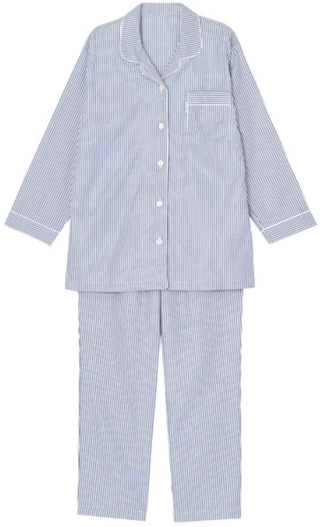 - ワコール【睡眠科学】★前開き襟付 長袖パジャマ★Mサイズ★綾織 ストライプ・シャツパジャマ★紺・ネイビー/KO★日本製