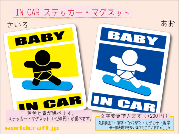 - ■BABY IN CAR 1枚販売 スノーボード!スノボ 青板 赤ちゃん ベビー シール 車に乗ってます ステッカー/マグネット選択可能☆即買(3