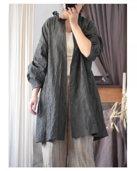 - hmp 2410 秋 皺加工 グレー チュニック 綿混 ゆったり アンティーク風