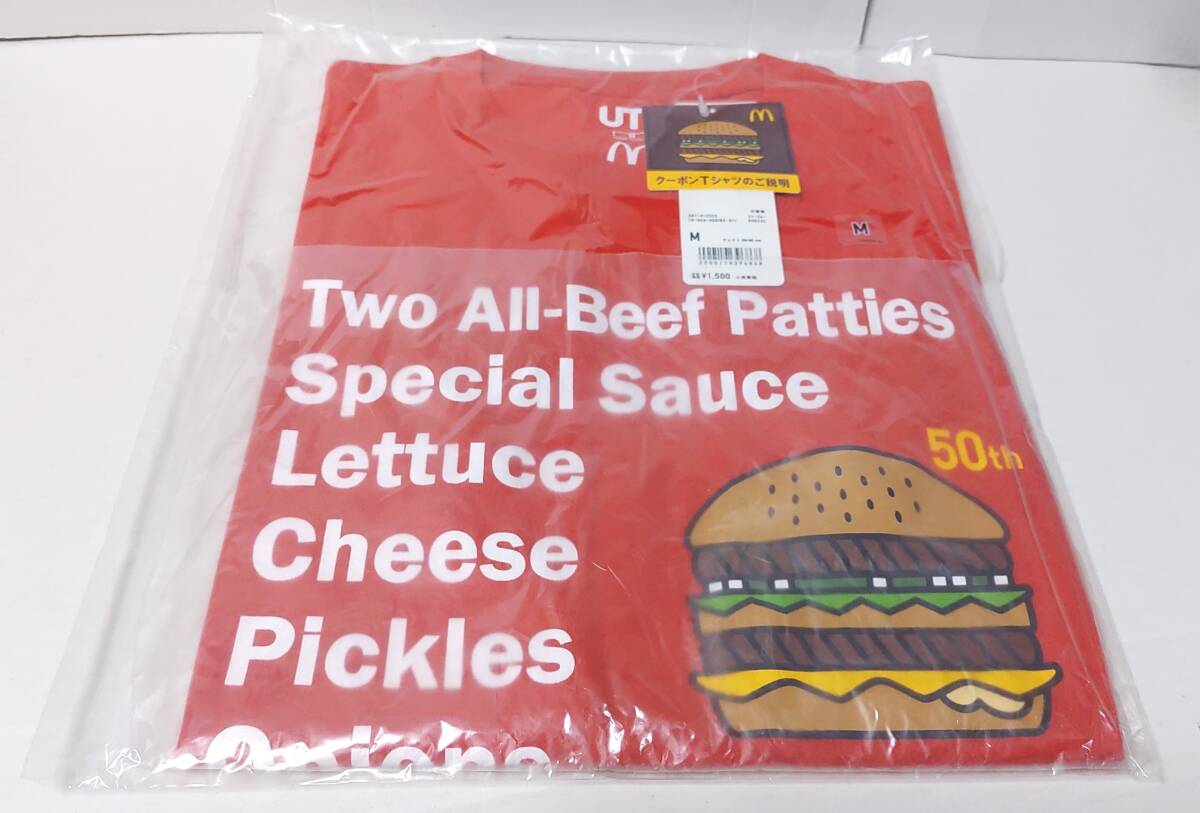 - 2018 UT コラボ ビッグマック50周年『マクドナルド グラフィックTシャツ』丸首 半袖 赤 前プリント M・チェスト88-96cm※未開封品/タグ付き