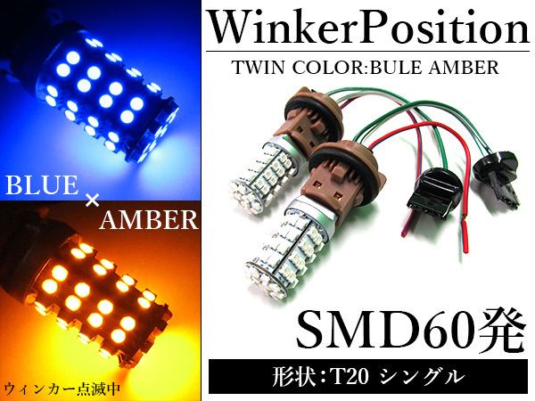 - SMD60発 T20 シングル ブルー⇔アンバー 青/橙 ダブル球 LEDウィンカーポジションキット ソケットタイプ ツインカラー