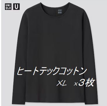 > 未使用タグ付 ユニクロU*XL×3枚 ヒートテックコットン クルーネックT⑦ ブラック ドルマン おしゃれ