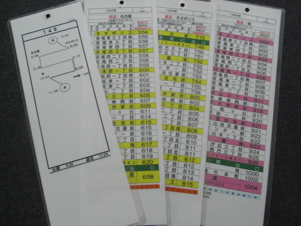 - 三重交通 バス運用表 149交番 4枚組 スタフ