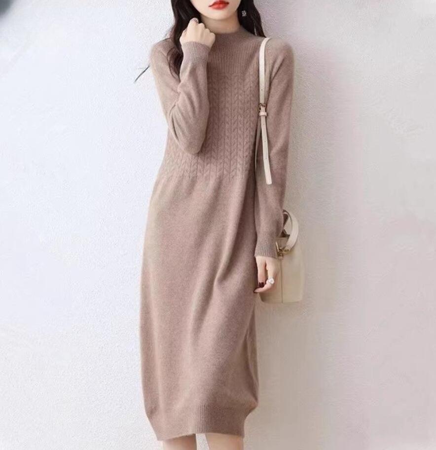 - 秋冬美品*ニット ワンピース レディース セーター ロング丈 着痩せ きれいめ 優雅 上品 気質 ニット ロングワンピース*キャメル