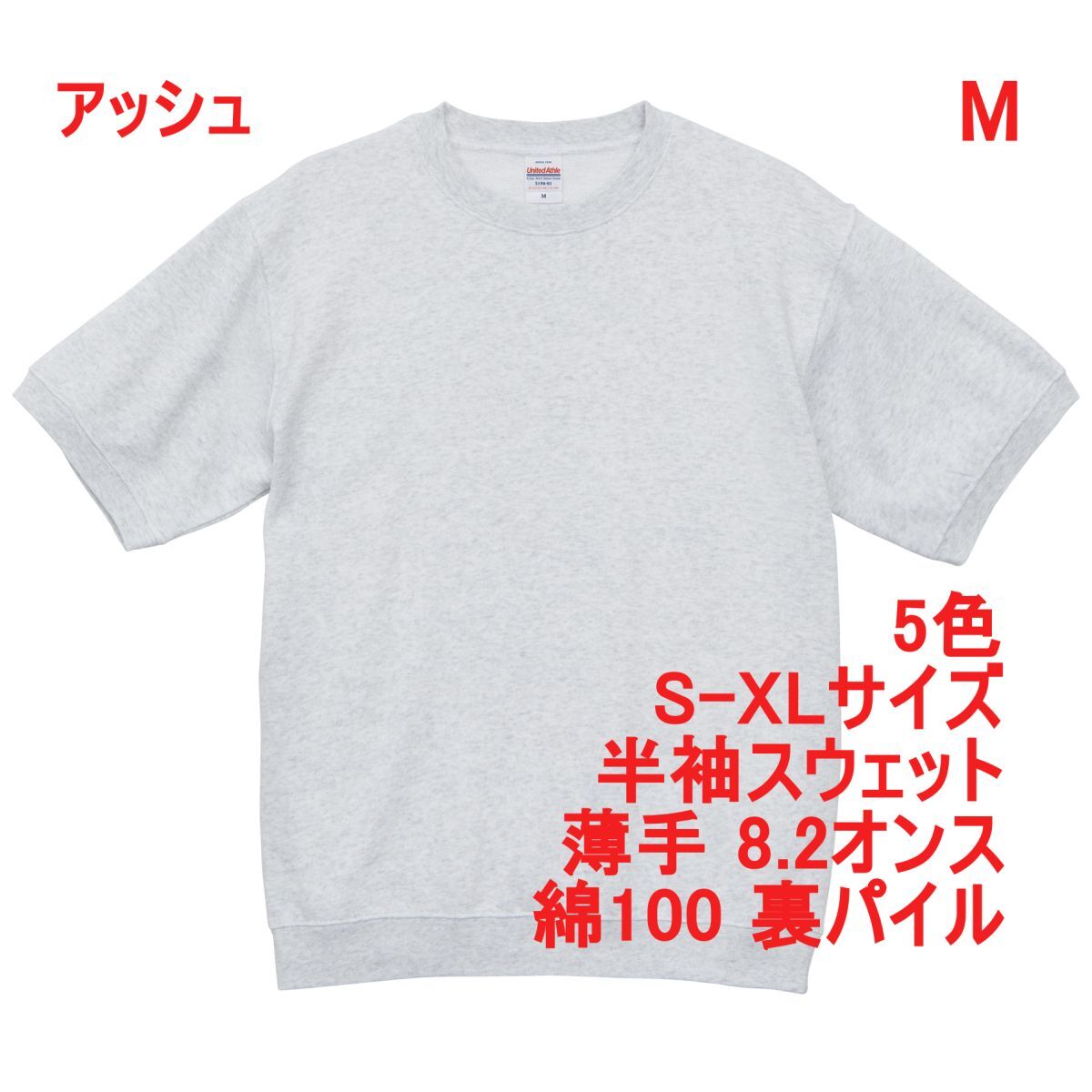 - 半袖 スウェット M アッシュ トレーナー 裏パイル 無地 薄手 8.2オンス セットアップ 上下可 519801 5198-01 5198 灰 灰色 ライトグレー