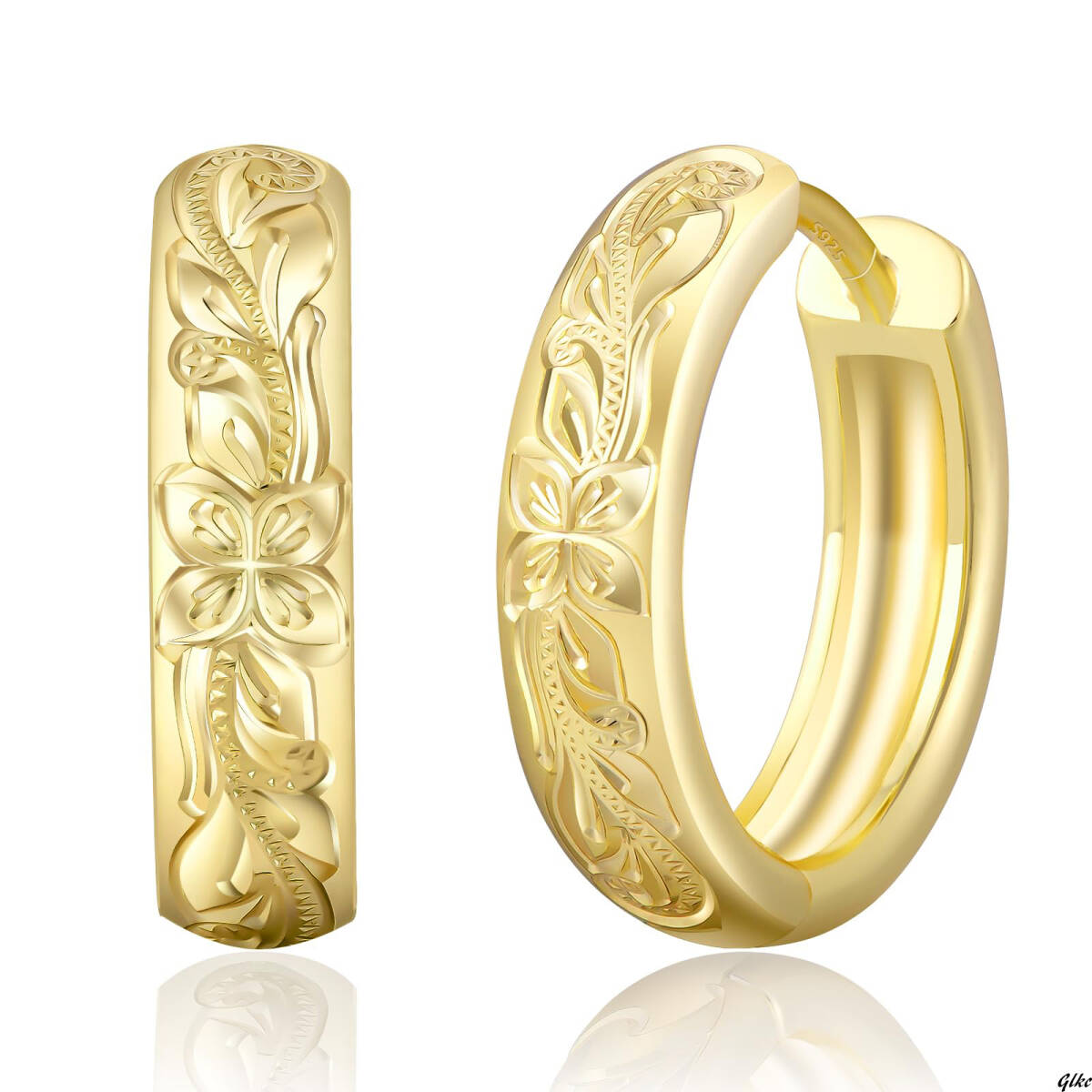 - 【贈り物に最適な南国デザインのフープピアス】 ハワイアンジュエリー 波/プルメリア 金属アレルギー対応 14金メッキ シルバー