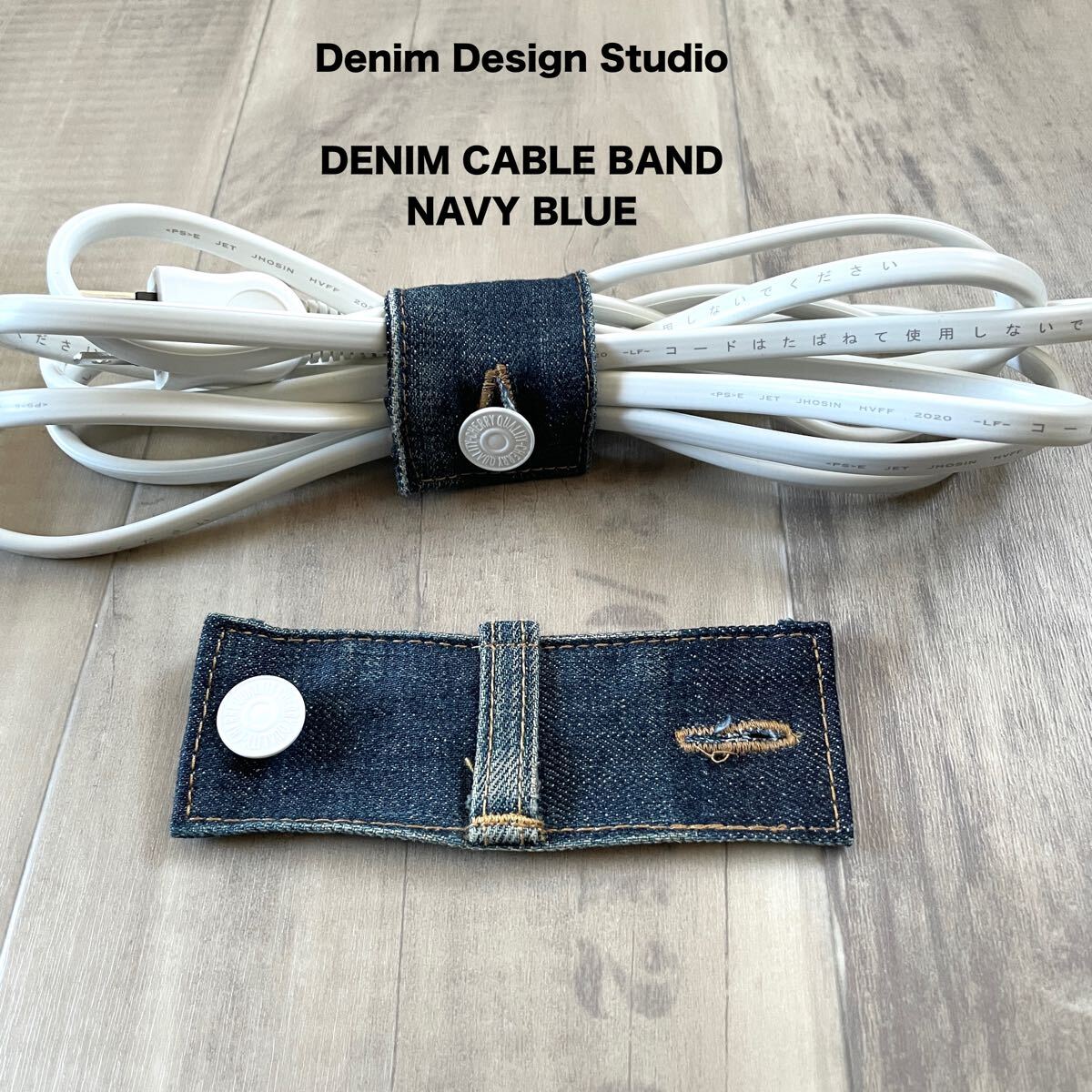 - 【ハンドメイド】デニムケーブルバンド 2個セット ジーンズリメイク インテリア雑貨 匿名配送 紺色 ネイビー