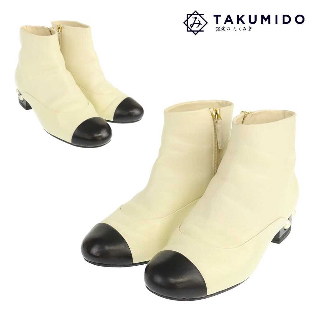 > シャネル CHANEL 靴 ショートブーツ フェイクパール サイズ37 1/2C ホワイト レザー 中古AB 278480