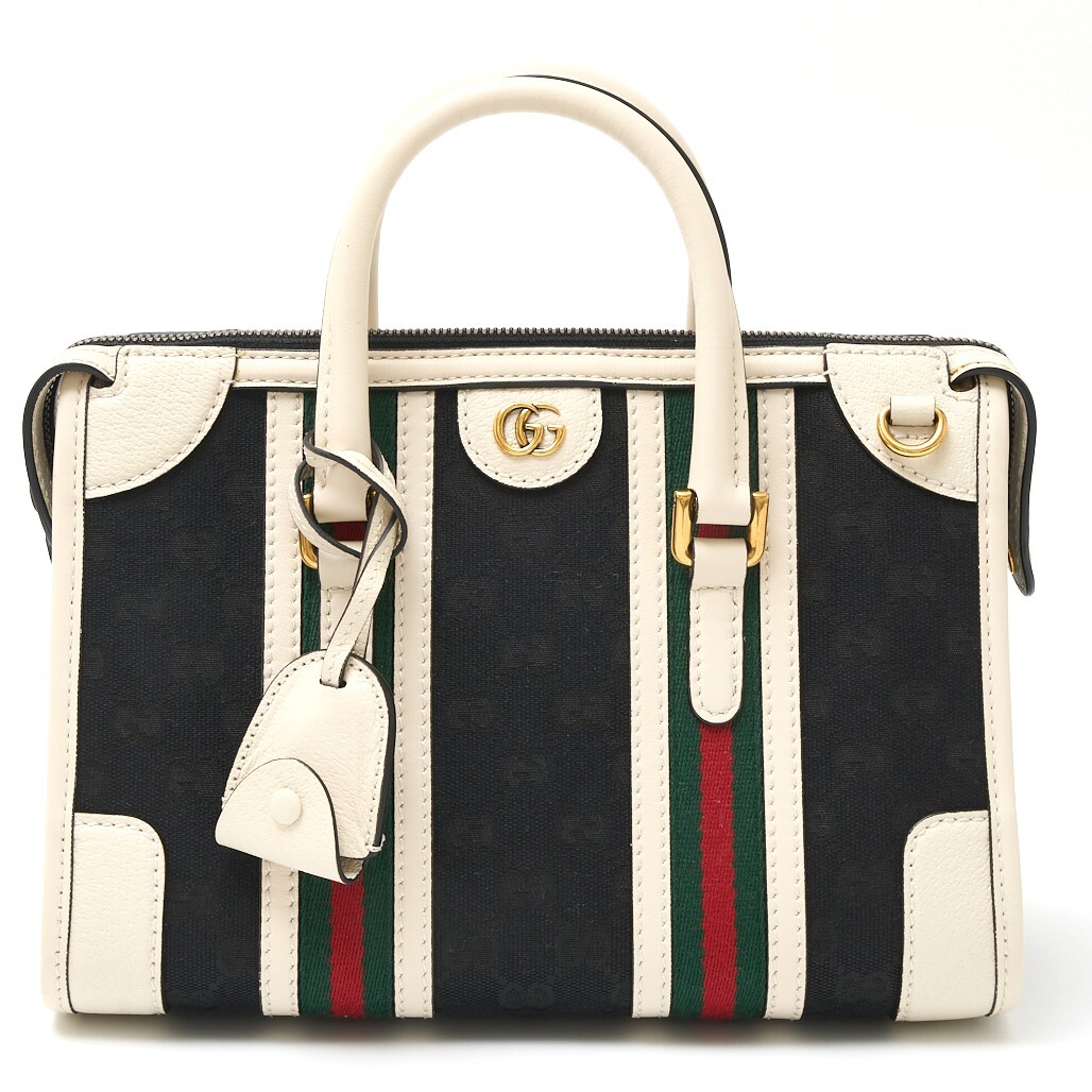 > GUCCI グッチ ダブルG トップハンドル 715772 2WAY ショルダーバッグ GGキャンバス×レザー ブラック×ホワイト×ウェブストライプ