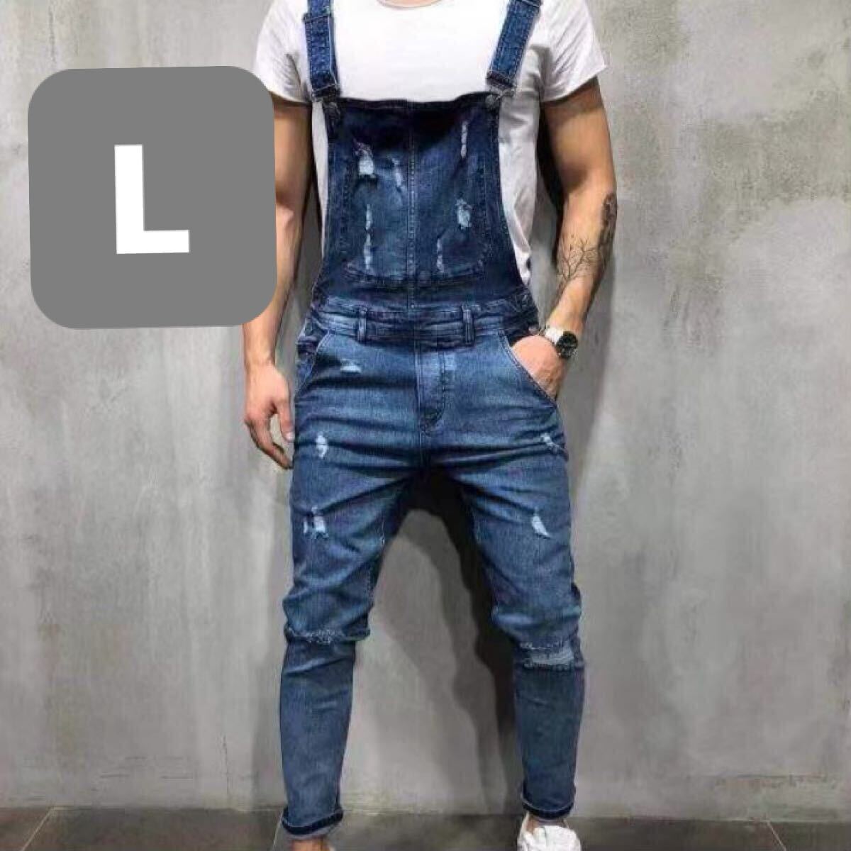 - デニム サロペット オーバーオール ジーンズ オールインワン トレンド ストリート ユニセックス メンズ レディース ブルー 青 L