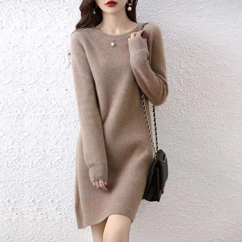 - 秋冬美品*ワンピース ニット 長袖 ロング丈セーター 秋冬 ニットワンピース 着痩せ 膝丈ワンピース オシャレ 気質 大人 きれいめ *キャメル