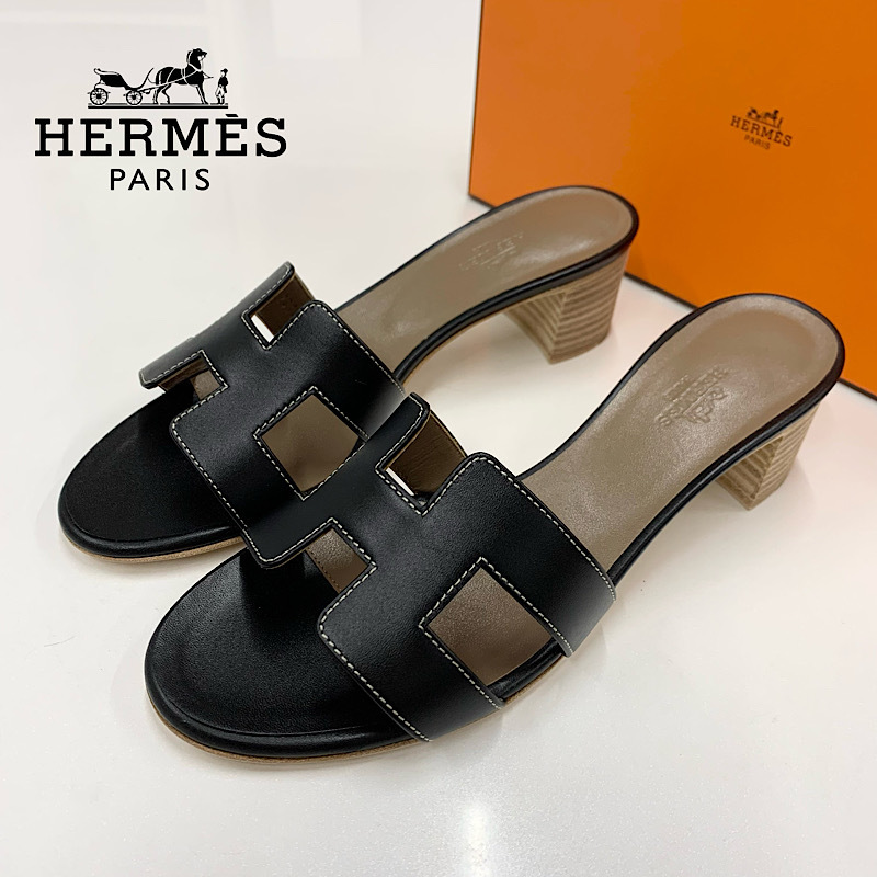 - M10794 未使用 エルメス オアジス レザー サンダル ブラック