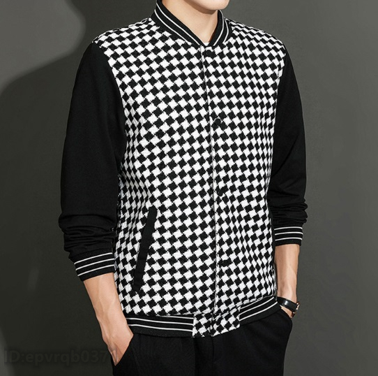- スタジャンジャケット 新品 メンズ ブルゾン チェック柄 ゆったり 野球服 アウター 紳士 トップス サイズ選択可 黒/Lサイズ