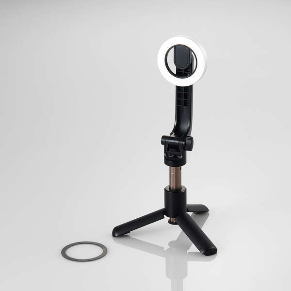 > スマートフォン用三脚 メタルプレート付属卓上置きタイプ 三脚は最大約205mmまで高さ調節可能: P-STMTBK