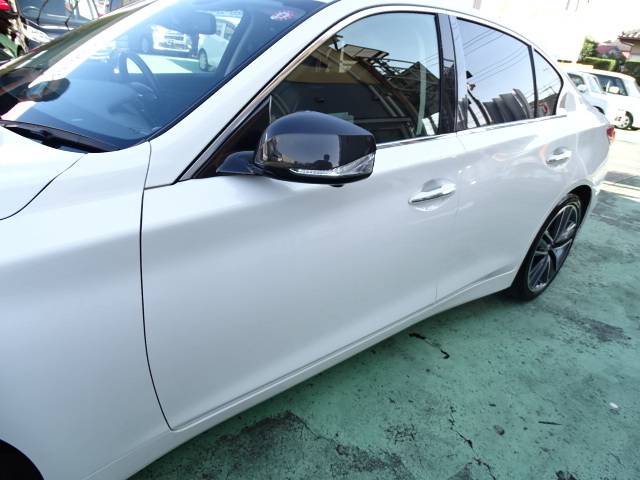 - 商品製造過程動画付!未使用スカイラインV37インフィニティQ50前期後期共通 リアルカーボン ドアミラーカバー 純正ドアミラー貼り付け装着