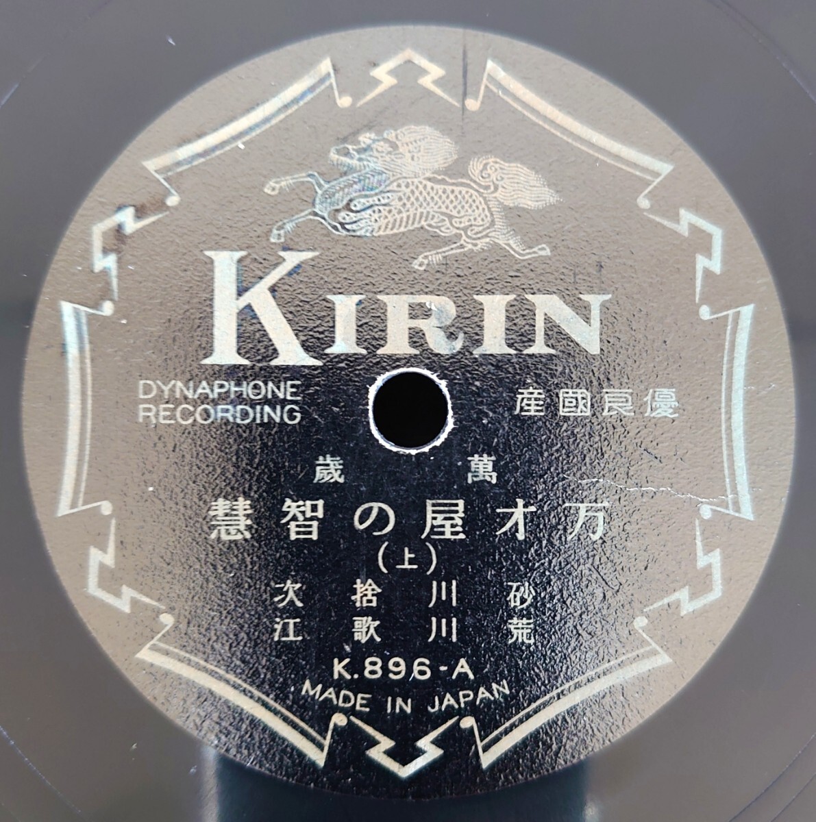 - 【蓄音器用SP盤レコード】KIRIN K.896-AB 萬歳/万才屋の智慧(上・下)/砂川捨丸 荒川歌江