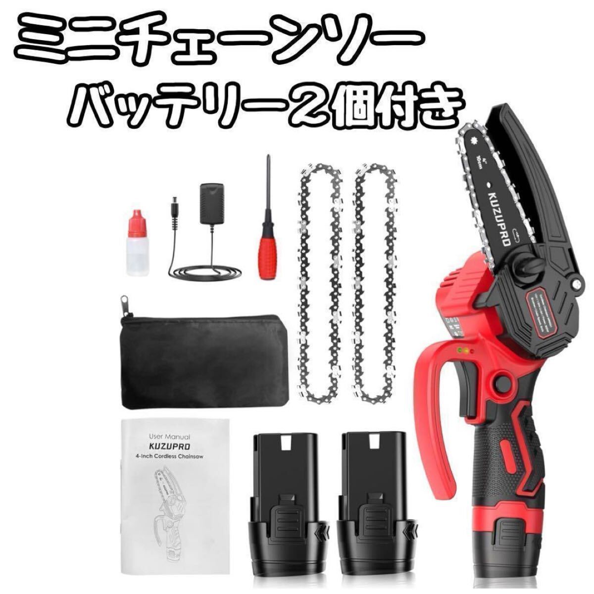 - チェーンソー ミニチェーンソー 充電式 軽量 枝切り 園芸 バッテリー2個 庭木