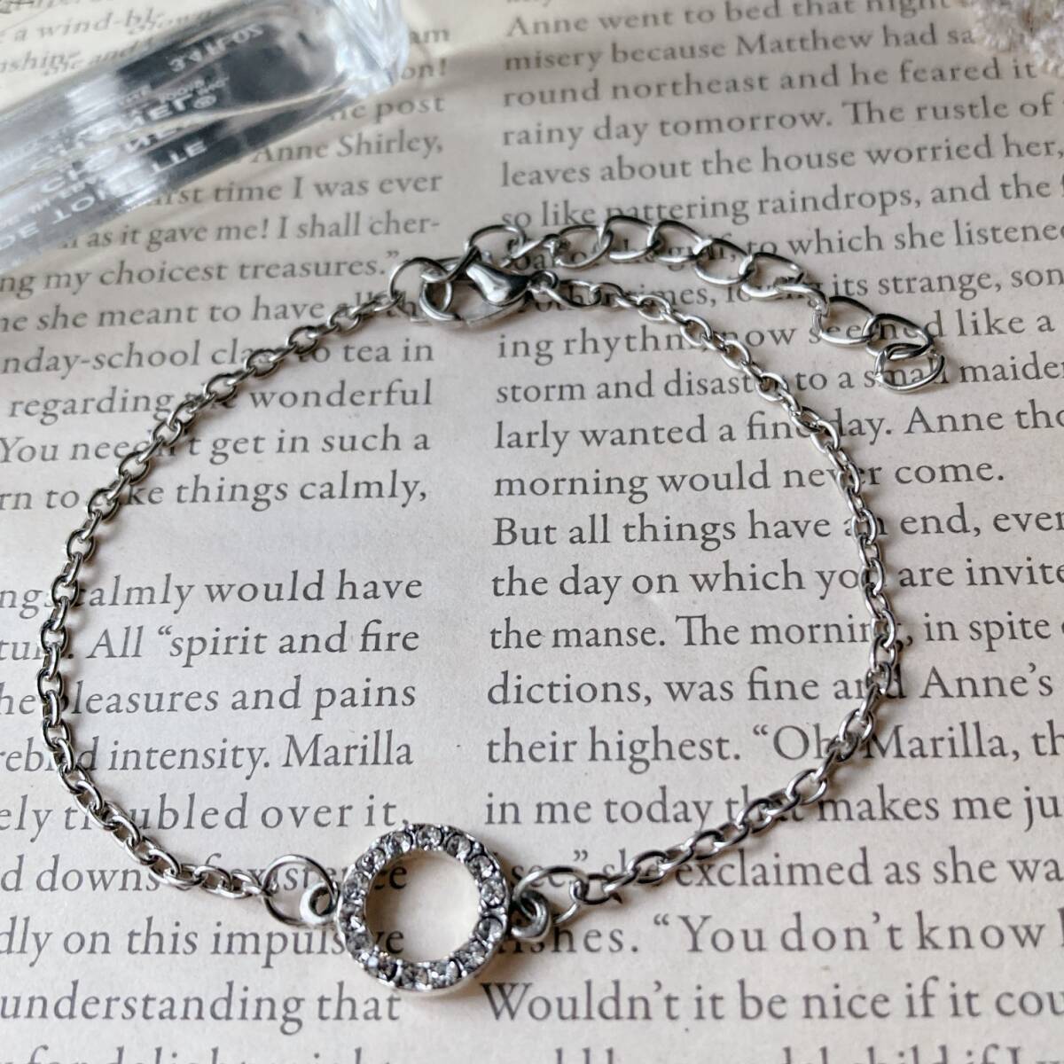 > ブレスレット シルバーカラー ラインストーン リング チェーンブレスレット シンプル 美品☆Vintage jewelry accessories R0075