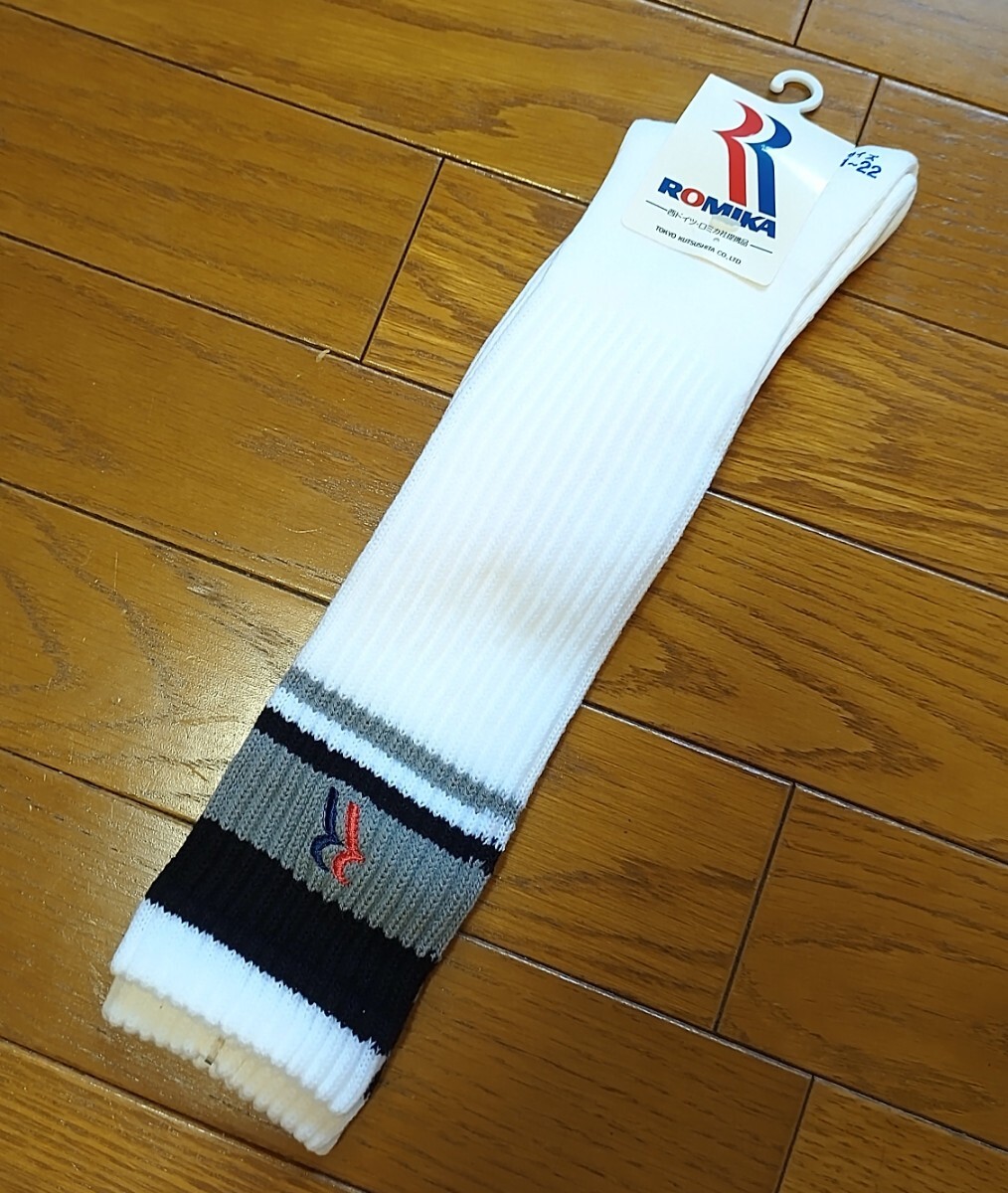 - 【ROMIKA】ロミカ・ハイソックス・ワンポイントロゴ刺繍・太リブ編み・厚手・白ソックス・稀少