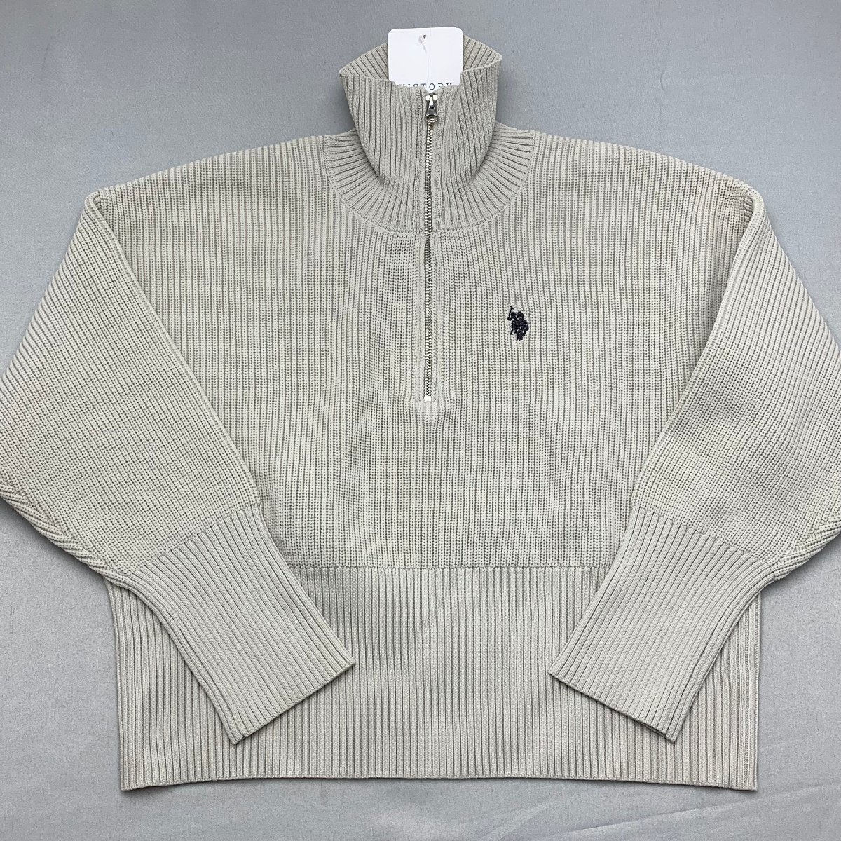 > 【送料無料】【新品】US.POLO.ASSN レディース ポロ衿ハーフジップセーター(着丈短め) L ライトグレー★33401