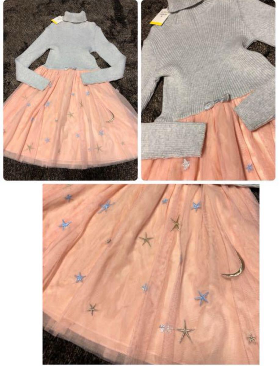 > 新品タグ付き サニーランドスケープ【人気完売レア】リブニット×チュールスカートワンピース 140 星刺繍 女の子子供服 アプレレクール