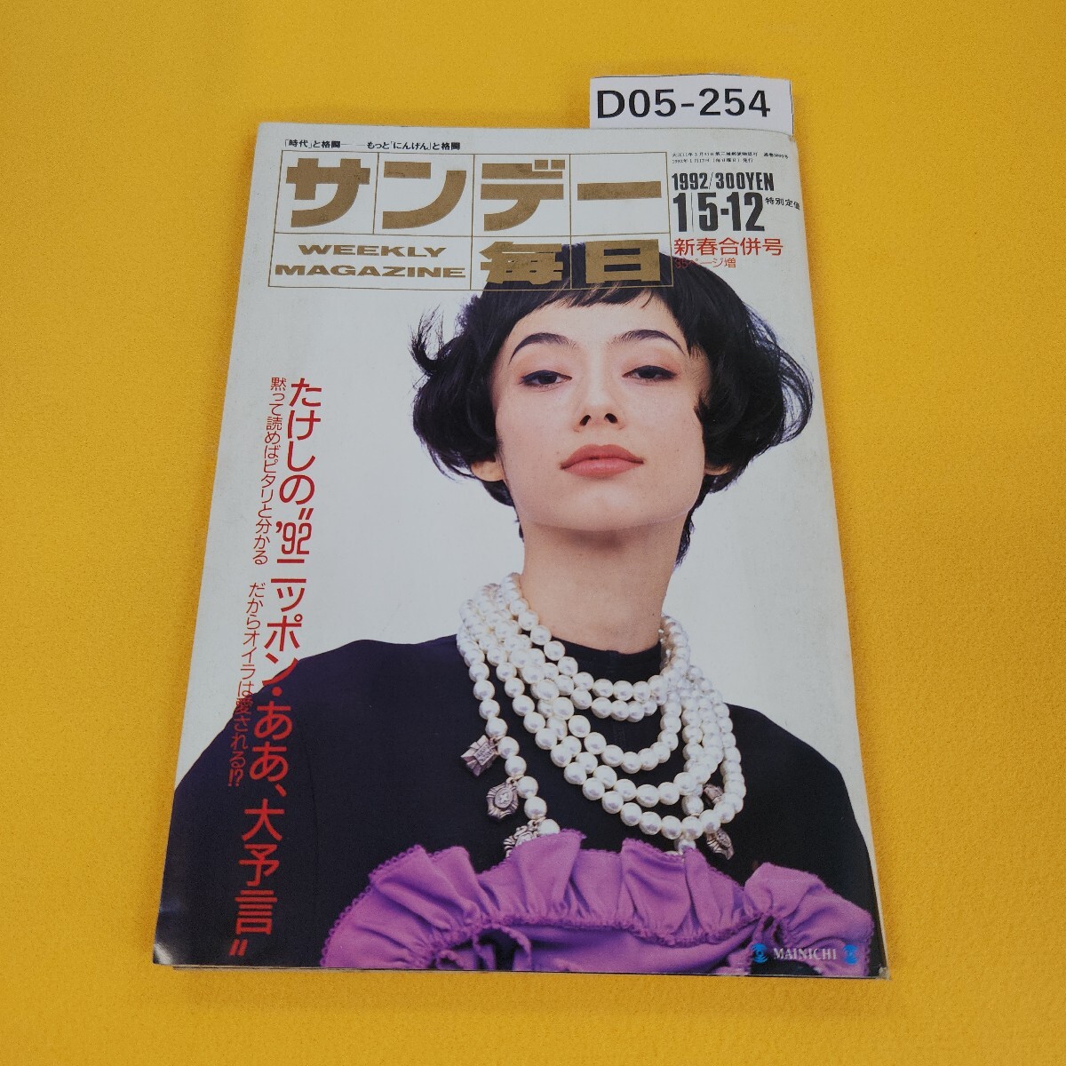 > D05-254 サンデー毎日 1992年1月5-12日新春合併号 たけしの'92ニッポンああ、大予言他 光文社 日焼け傷汚れ角破れあり。