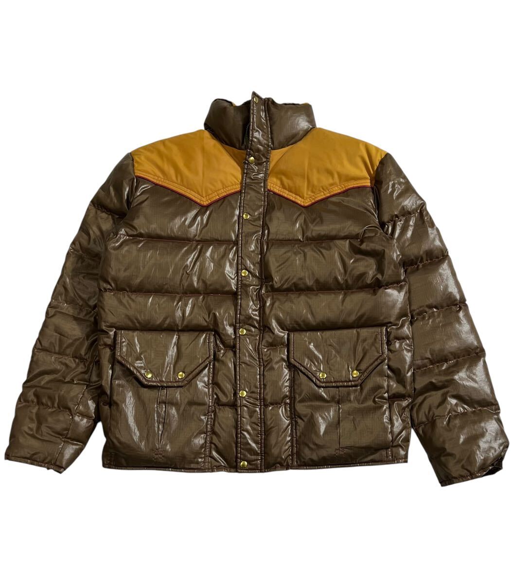 > ■ WAREHOUSE DUBBLE WORKS ウエアハウス ダブルワークス ■ ヨーク部 切替 ダブルジップ ダウン ジャケット ブラウン L