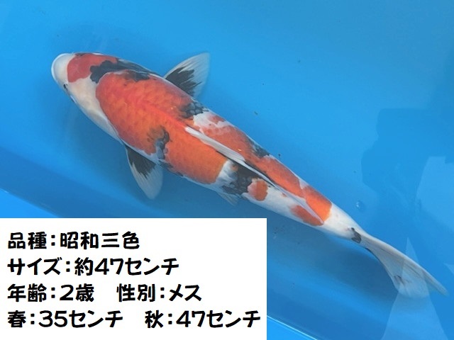 - 福嘉錦鯉 動画あり!野池に入れる前最終値下げ! 天藤産 2024年野池上がり 昭和三色 R6-1 錦鯉 約47㌢ 2歳 メス 2023産 現物 1匹 滋賀