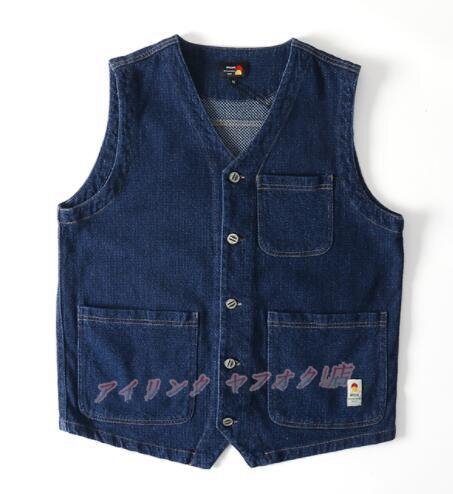 - ☆新品ベストメンズ マルチポケット ワークジャケット レプリカ デニム コットン100% デニム アメカジ サイズ選択可
