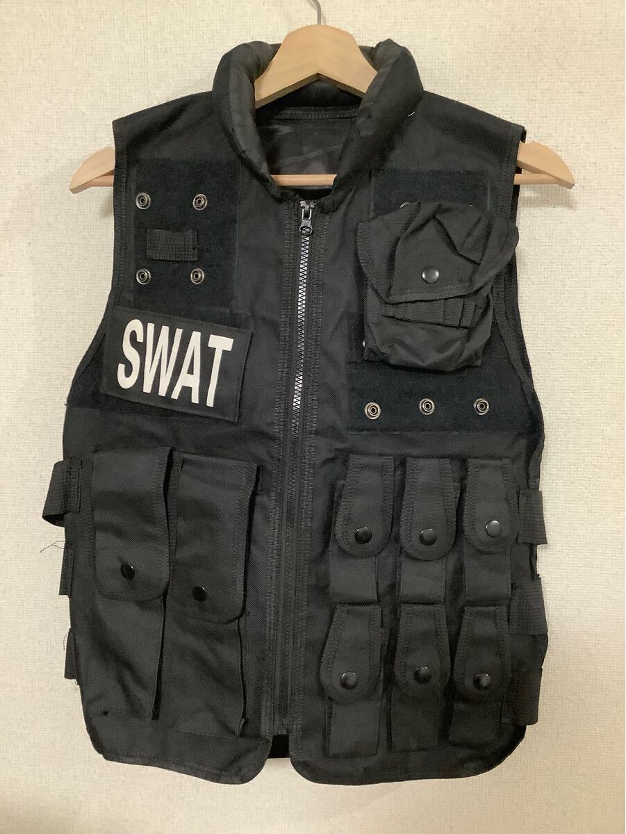 > SWAT スアット タクティカルベスト ミリタリー サバゲー ブラック メンズ 装備 黒 古着 中古