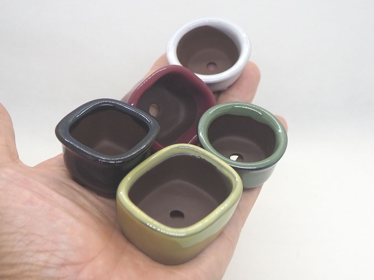 - 991* 文山 1.5号 磁器豆鉢 色釉 5点セット 未使用品 ミニ盆栽 盆栽鉢