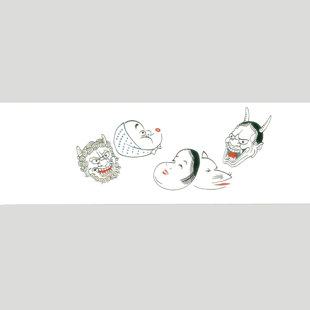 - 手拭「お面 般若 稲荷 おかめ ひょっとこ 鬼 」ゆかた地 本染踊り てぬぐい 歳128作5119