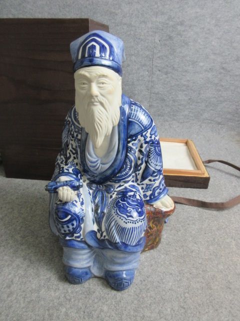 - 【政】33763 九谷焼染付寿老人像 仏像 置物