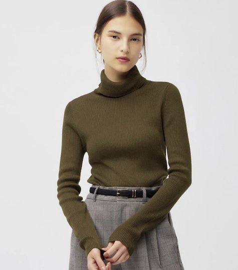 > 05【新品タグ付】*GU ジーユー リブタートルネックセーター (長袖) Brown L レディース 送料無料