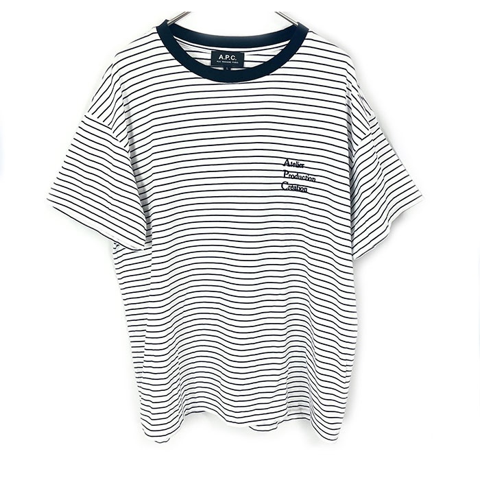 > アーペーセー A.P.C. ボーダーTシャツ ピンボーダー ロゴ刺しゅう ホワイト ネイビー 送料無料 h1007k0116 中古 古着 ブランド古着DB