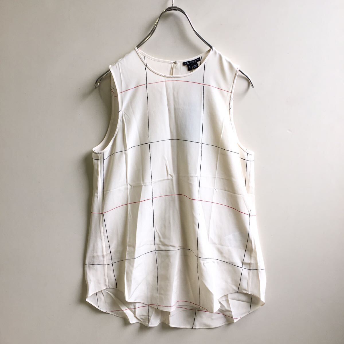 - ● theory ◆ シルク ノースリーブ トップス アイボリー Sサイズ (下げ札付) チェック柄 シアー タンクトップ セオリー ◆W5 ZろZTJ-32