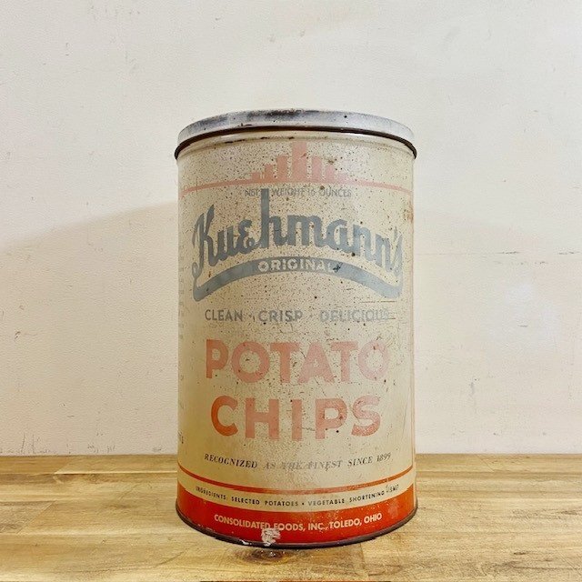 - アメリカ ヴィンテージ ポテト缶 40's 50's お菓子缶 アメリカン雑貨 収納 店舗什器 ディスプレイ インテリア 店舗備品【B2720】